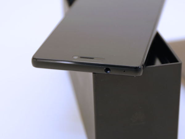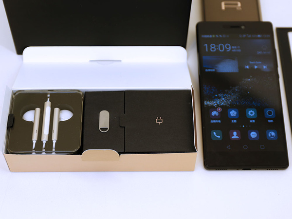 P8的包装盒也下了一番功夫。你需要将侧面朝上,拉出盒子才发现还有一层盖子,像是开启什么不一样的东西。盖子打开后发现手机是插在一侧的,按照华为的说法,这是一种“书卷式”的设计。不过毕竟是一部手机,不会像书架上的书那样容易取放,由于运输的考虑还是得固定住的。