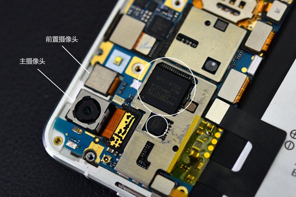揭下铜箔,看到是4G基带芯片MT6290(大圆圈处),支持TD-LTE 4G网络,如下图所示。