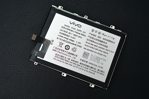 与一般手机直接把电池粘贴在机身上不同,vivo X5的电池是粘贴在一块钢板上,再通过螺丝进行固定。这样做不但可以保护电池免受挤压变形,还可以更有效的进行电池更换。
