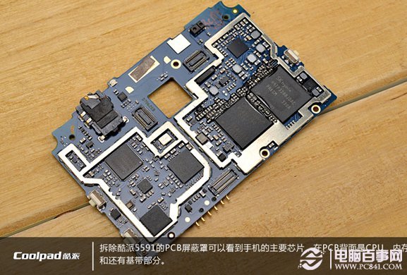 拆除酷派5951的PCB屏蔽早就可以看到该机的内部核心芯片细节了,这里主要集成了CPU、内存以及基带和电源控制等核心重要芯片都集成在此。