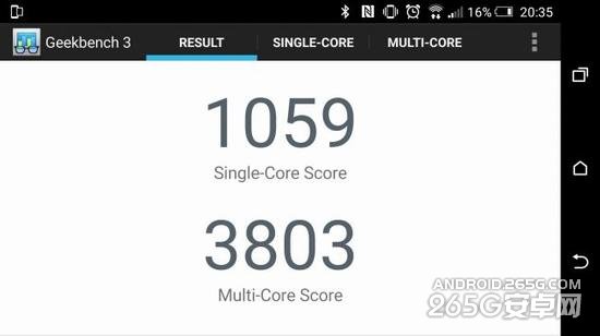 Geekbench 3给出了一个相当不错的分数,当然这还不是M9的完全表现,因为HTC为了防止机身过热限制了一些硬件的性能。