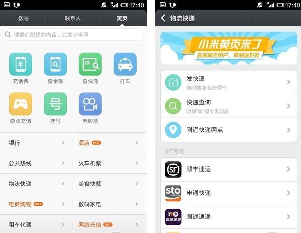 小米发现很多服务APP,例如58、顺丰、银行等,想用时发现没装APP,装了之后又发现用不了几次。因此开发了小米黄页这个功能,整合各种常用生活服务,不需安装APP,想用就用,支持手机充值、快递查询、订票、代驾、挂号等服务。