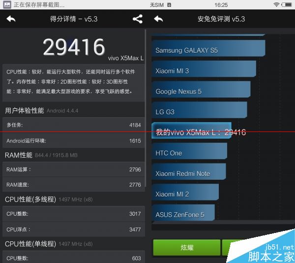 现场进行简单而仓促的跑分测试,vivo X5Max表现在水平线上。