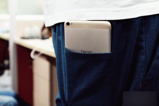 我们可以看看华为荣耀X2、华为P8以及iPhone 5s这三款手机放在一起的对比,粗略看来,荣耀X2相比5s要大上约一整圈。这么大,会不会影响随身携带呢?影响肯定是有的,但并没有你想得那么严重,只要你的兜不是特别的浅,正常的裤子口袋完全可以装的下它。