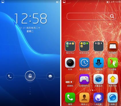 乐蛙OS5完美版加入了扁平化的大潮,经典的滚边圆角矩形图标,精致、美观且容易识别,“三点拉动式”锁屏界面比较有特色,解锁后直接到达应用界面,简化了系统层级。