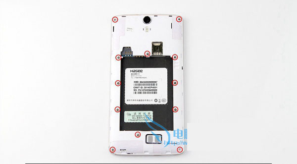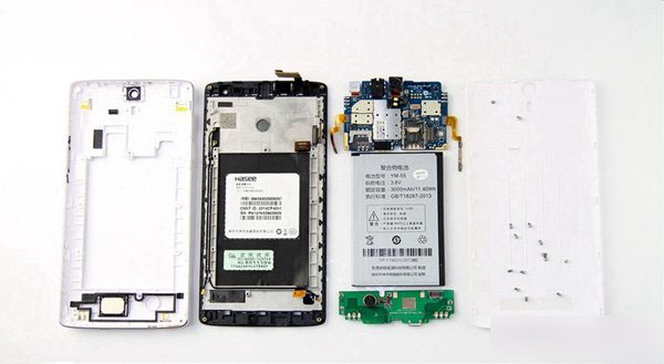 在拆解之前还是先来回顾一下这款神舟灵雅X55的硬件配置。神舟灵雅X55正面配备了一块5.5英寸720p屏幕,处理器方面采用了MTK6592八核处理器,跑分大幅领先红米Note 4G版,2GB RAM+16GB ROM的存储组合,500万像素前置摄像头+1400万像素主摄像头。