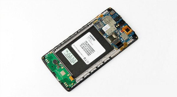 在将螺丝全部拧下之后笔者试图拆除中框,经过多次尝试才发现该机的中框与背板连为一体,并且与屏幕总成通过暗扣固定。