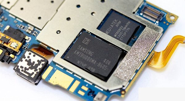 主板背部同样是大面积的金属屏蔽罩,不过在这里我们看到了该机的处理器和闪存芯片。