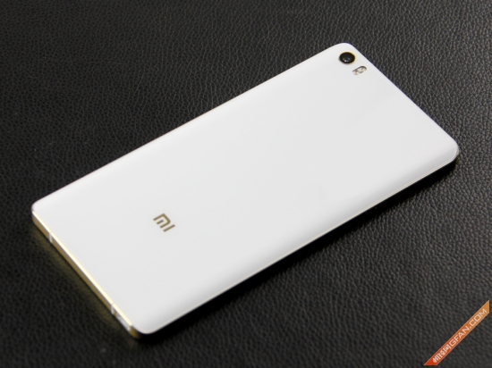 背部下方为小米的“mi”LOGO,其中“mi”LOGO是沉在整个玻璃背板的下方。