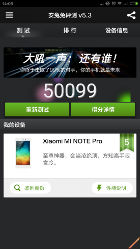 小米note顶配版安兔兔跑分50099