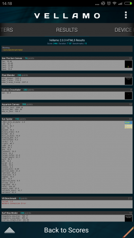 Vellamo是由Qualcomm(高通公司)开发的一个基准测试应用(类似于Neocore),它可以让你对手机浏览器的性能及稳定性进行测试,包括像Java脚本性能、渲染、联网和用户界面等。该工具的结果同样包括多个子项,但我们只取总成绩,分数越高则表明手机对浏览器的优化程度越高,网页浏览体验更好。