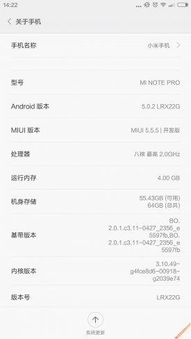 系统总结:小米note顶配版搭载了最新的MIUI V6系统,不仅在系统界面上重新设计,更具扁平化风格,同时还增加了众多人性化功能和完善的云端服务,让用户不需要在手机中下载代驾、购票等APP软件,通过网络就能直接享受这些服务。