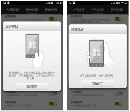 在特色设置选项中,正如它的名称一样,联想黄金斗士S8预置了多个特色设功能选项,比如智能接听、智能呼叫、水银键盘、黑屏解锁、空灵触控以及侧键亮屏等等,与之前的联想VIBE X、VIBE Z相似。启动以上这些特色功能之后,则可以为用户的日常使用带来极大的便利。