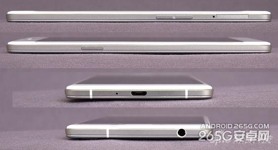 R7的顶部和底部分别是耳机和USB接口,由于机身太薄,3.5mm标准耳机接口的尺寸已经超过了铝框。电源键在机身左侧而音量键在右侧,再一次与我之前使用的手机相反,而且位置都比较靠下,接近机身中间位置了,比较容易误触。