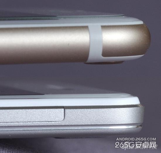 首当其冲就是边缘处理。先来个侧面微距图跟iPhone6对比下,R7的侧边处理官方称之为流光侧边,显然圆润度还是远不如iPhone6,线条也没那么流畅。