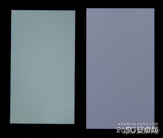 纯白画面屏摄对比,大的是R7。,拍摄前已经两台手机的亮度达到一致,亮度是用照度计测量的以确保客观。显然两块屏幕的色温有所区别。