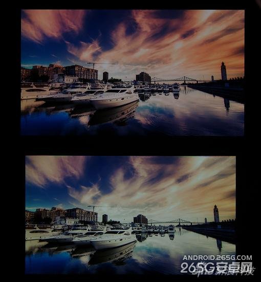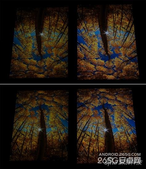 左右斜视对比也体现了同样的情况。当然这是用相机放大了两者的差异,iPhone6的屏幕视角表现已经非常好了,只是AMOLED这种屏幕有先天优势,原理上就决定了它的视角是远胜于LCD屏的。