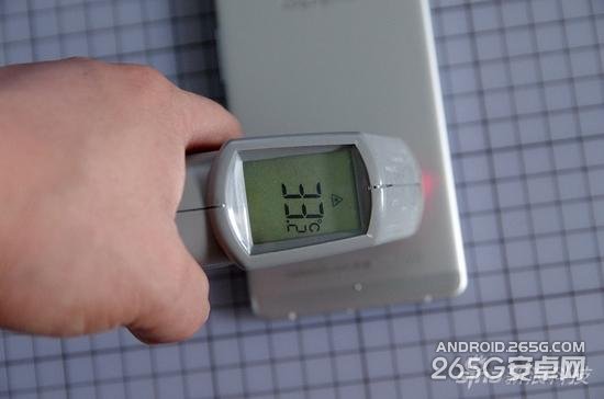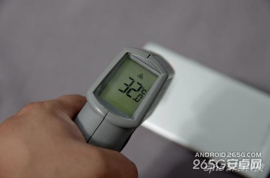 在第三次测试中我测试了手机背面的温度,最热的部分在手机顶部,最高温度38.2度,而手机下面部分基本维持在33度左右,测试是室温27度,发热表现相当不错。