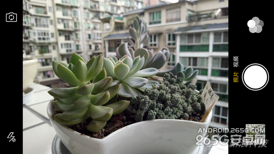 超级微距模式:R7的摄像头本身微距能力不强,最近对焦距离显然不如iPhone6,但它有个超级微距模式,可以将画面中间部分放大来提供微距效果。上面动图就是R7处于同一位置下,开启和关闭微距模式时的画面区别。