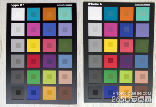 R7和iPhone6拍摄的SpyderCheckr24标准色卡,这个色卡配合软件可以给对相机进行校色,通常用于对色彩有极高精确性要求的商业摄影。