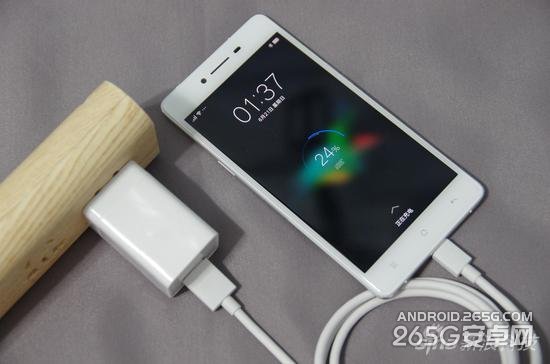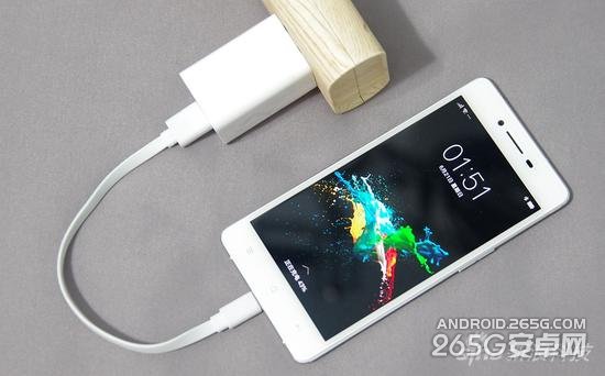 R7最大的特色就是独家专利的VOOC闪充功能了,闪充5分钟可打电话2小时的广告语随处可见。通常USB2.0是黑色、USB3.0是蓝色,而OPPO把USB做成了绿色来彰显自己的独特。
