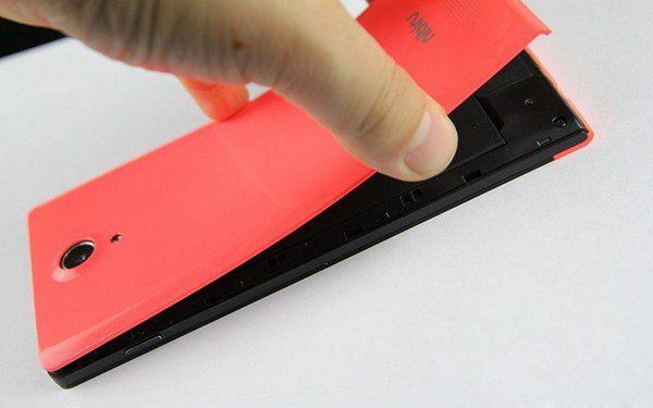 接下来我们正式进入nibiru H1拆机,nibiru H1手机采用了可拆卸后盖设计,拆机当然是从后壳入手,由于可以打开后盖,因此拆机也比较容易,值得一提的是,nibiru H1后盖比较柔软,开启后盖的时候,需要注意力度。