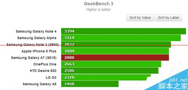 骁龙615的性能只能说是中端机的水平,在针对CPU运算性能的Geekbench 3跑分中,它的性能和老旗舰note3接近。