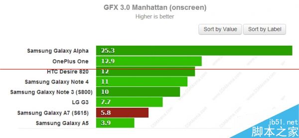 GPU测试之中,残酷的事实再次证明骁龙615上的Adreno 405,根本撑不起1080P的大型游戏。它的GPU性能只有Exynos 5430上的Mali-T628 的一半。虽然这已经比A5骁龙410的Adreno306强很多了,但A5用的可是720P,这导致它们的表现差距被明显拉小了。