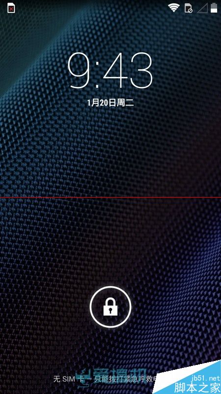 锁屏界面,通过下方的解锁按钮进行滑动解锁。