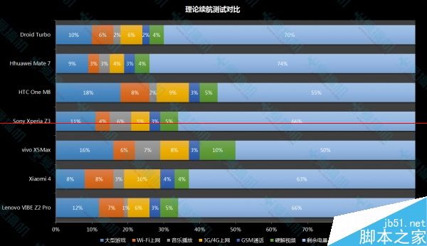 摩托罗拉给Droid Turbo装置了一块3900的超大电池,对于5.2英寸屏幕的手机来说,这绝对是属于怪兽级的搭配,就算相对很多6英寸屏幕的手机来说,这样的电池容量也不逞多让。我们也使用过往的方法对它的续航能力进行测试,具体的测试方法如下: