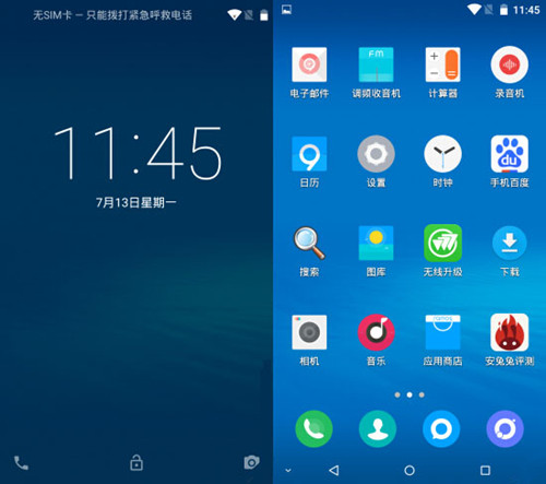 说完了外观,接下来我们再来看一下系统。系统部分对于蓝魔MOS1来说也是非常值得一说的地方。因为此次蓝魔不仅发布了旗下第一部智能手机,同时还捎带手发布了MOUI1.0操作系统,这一点对于以前总是使用Android原生操作系统的蓝魔来说同样实属首次。