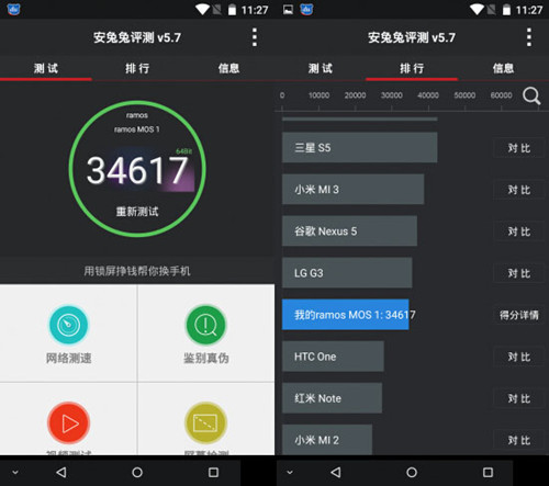 安兔兔跑分(AnTuTu Benchmark)是一个专门给Android系统的手机、平板电脑硬件跑分的软件,它能一键运行完整测试项目,通过内存性能、CPU整数性能,CPU浮点性能、2D、3D绘图性能、数据库I/O、SD卡读、写速度等多项性能测试,并对手机的整体和单项硬件性能做出评分,同时上传分数并查看该设备在世界的排名。