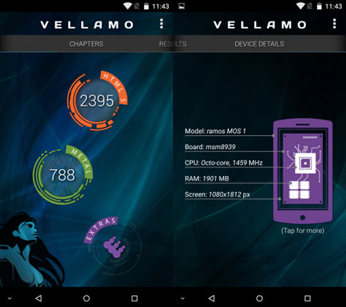Vellamo是由Qualcomm(高通公司)开发的一个基准测试应用(类似于Neocore),它可以让你对手机浏览器的性能及稳定性进行测试,包括像Java脚本性能、渲染、联网和用户界面等。该工具的结果同样包括多个子项,但我们只取总成绩,分数越高则表明手机对浏览器的优化程度越高,网页浏览体验更好。