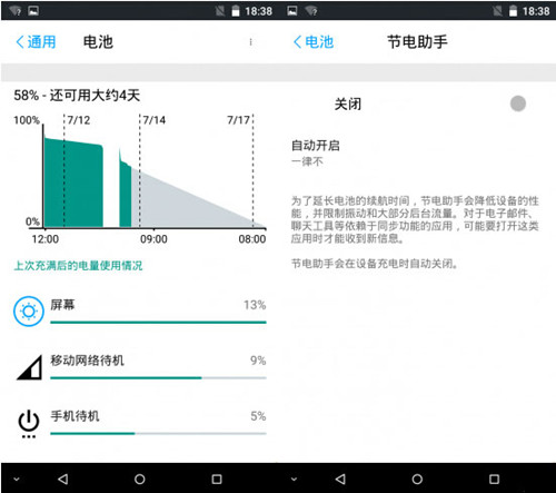 而在续航性方面,通过比亚迪先进的电池技术以及优化的电池管理办法,蓝魔MOS1的续航时间要比其他同等量电池提升20%。而通过我们的实际使用,我们也确实发现蓝魔MOS1的电池十分抗用,对于中度用户来说,两天一充问题也不大。同时由于蓝魔MOS1采用了高通骁龙615芯片,所以蓝魔MOS1自然也能够支持高通QC2.0速充技术,能够做到充电10分钟可充电15%左右的水平,对于手机充电越来越碎片化的时代,快充技术的加入确实能够对用户的使用产生非常大的帮助。
