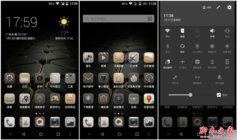 中兴AXON天机MAX搭载基于Android 5.1的MiFavor 3.5系统,为了大屏优化,加入了5×5排列的桌面布局设置,单页可放更多内容。系统功能上,提供手势操作、天籁K歌、汇分享等功能。
