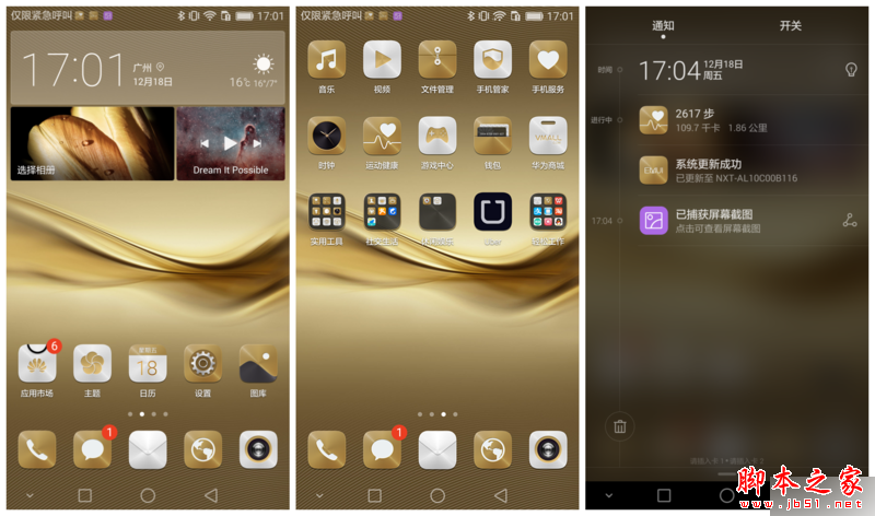 华为Mate 8搭载基于Android 6.0的EMUI 4.0,EMUI 4.0保留了UI框架不变的前提更换了更多更自然顺滑的转场动画,UI布局还是以前的模样,譬如杂志解锁、Time Line呈现的通知栏、圆角矩形的拟物化风格图标等等都在该版本上得到了保留,这可能是为了方便老用户能更容易上手新系统。