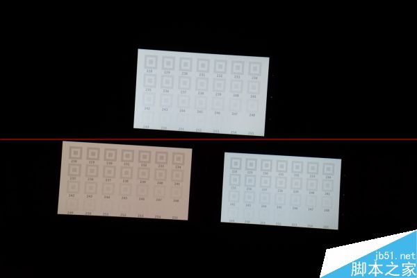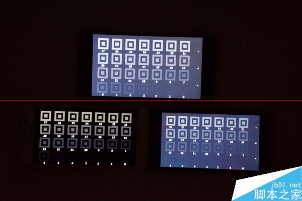 从上到下,从左到右分别是Xperia Z3、Galaxy Alpha以及Xperia Z3 Compact。在纯色对比中,由于Galaxy Alpha在白平衡上偏暖,使得出来的颜色略显偏色。如Galaxy Alpha的红色显示为橘红色,并且色彩较为浓郁。而Xperia Z3 Compact由于亮度上并没有Xperia Z3高的丧心病狂,所以反而没有出现最高亮度下略显发白的情况。