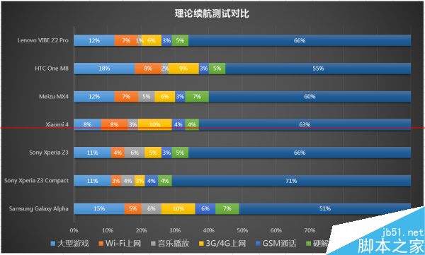 在理论续航对比中,电池容量为2600mAh的Xperia Z3 Compact表现极为出色,完整续航测试后剩余电量达到了71%。虽然这个成绩较大程度上得益于Xperia Z3 Compact的小尺寸屏幕与分辨率,但高性能与强续航的表现,实在让人赞叹。