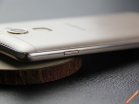 而机身顶部为3.5mm耳机接口,而底部则是microUSB接口与麦克风的位置,电源键位于机身右侧偏上的位置,而左侧则是音量按键。无论是电源按键还是音量按键,整体的使用感受还是很不错的,按键的键程合理,硬度也十分合适,不必担心误触的情况。