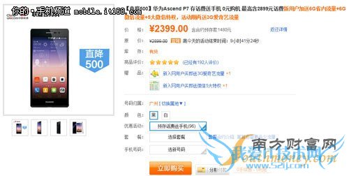 广东联通网上营业厅(www.10010.com)正在举行促销活动[点击查看详情],多款手机低价促销,并有充值卡赠送。华为P7合约机参与这次的促销活动,原价2899元的华为P7现在只要2399元,直降500元,还有2899元话费赠送,价格比裸机便宜,还有话费流量赠送,非常超值。