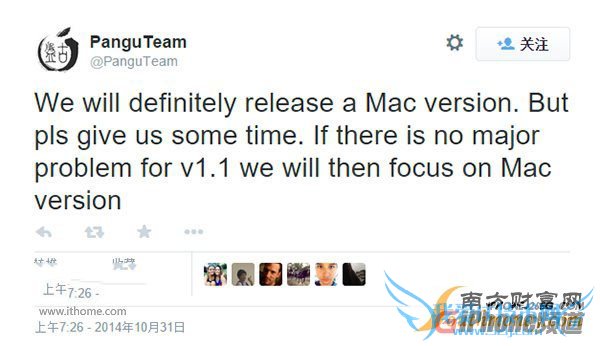 盘古越狱团队在在发布新版iOS8 - iOS8.1x完美越狱工具的同时也将Mac版iOS8.1完美越狱工具列在计划当中。