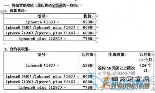 iPhone6移动合约机套餐资费,中国移动iPhone6合约套餐公布:史上最坑爹