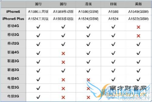 哪款最合适?版本眼花缭乱,别看错 iPhone 6:16GB 5288元 64GB 6088元 128GB 6888元 iPhone 6 Plus:16GB 6088元 64GB 6888元 128GB 7788元 iPhone6和iPhone6 Plus:16G/64G/128G 黑色、银白和土豪金 2×3×3=18一共十八种口味任您选择~ 四个国行版本区别 国行iPhone6/iPhone6 Plus共有四款型号,分别是A1586、A1589、A1524、A1593. A1586:为全网通的iPhone6,支持TD-LTE、FDD LTE、WCDMA、TD-SCDMA、CDMA2000以及GSM; A1589:为移动定制版iPhone6,支持TD-LTE、TD-SCDMA、GSM,漫游支持WCDMA以及FDD LTE. A1524:对应全网通的iPhone6 Plus,支持TD-LTE、FDD LTE、WCDMA、TD-SCDMA、CDMA2000以及GSM; A1593:对应移动定制版iPhone6 Plus,支持TD-LTE、TD-SCDMA、GSM,漫游支持WCDMA以及FDD LTE. 下面我们通过一个表格来了解一下