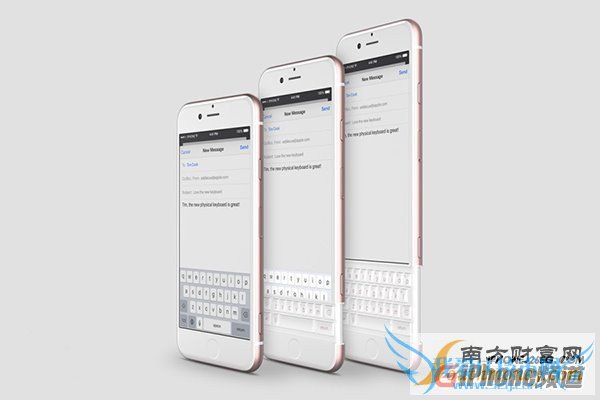 近日就有设计师设计了全新的iPhone7(作者称iPhone6K,不过没关系)概念图,脑洞很大,灵感显然来自于刚刚发布不久的黑莓Priv手机,因为该机的底部也有一个滑出式实体全键盘,手机的整体外形跟iPhone6是一致的。
