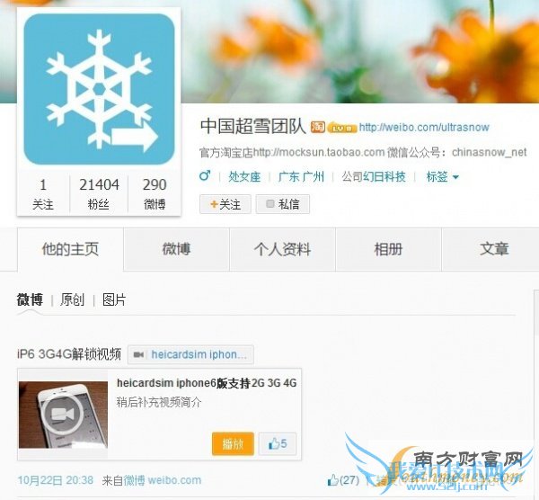 合约机破解 日版iPhone6支持移动/联通4G(图片截取自微博)
