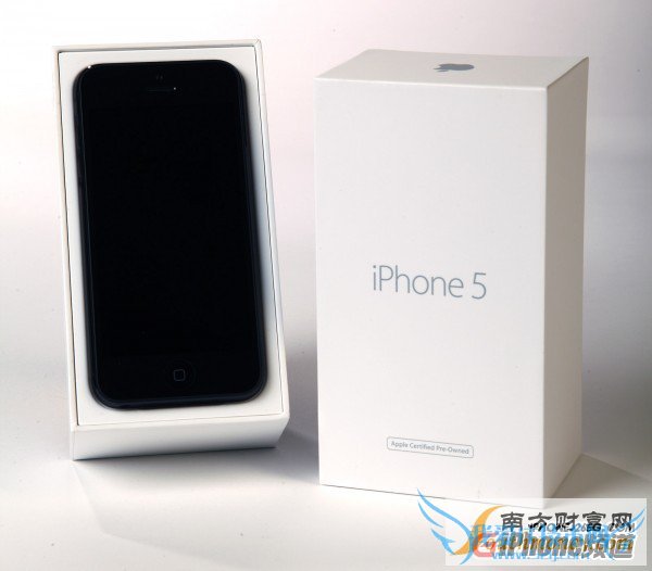 与置换机只有一个单机头不同,官翻机出厂时带有包装且搭配了全新的配件,下图为官翻 iPhone5 的包装,白盒,且盒子上印有“Apple Certified Pre-Owned”
