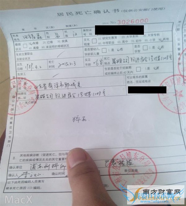2月3日,在上海昌硕公司生产iPhone 6的工人田福磊死亡,根据医院死亡原因为“猝死”,但是过世之前,田福磊日复一日地承担很多加班时间,将猝死和超时加班这两个因素考虑在一起,能够作为田福磊过劳死的证据。