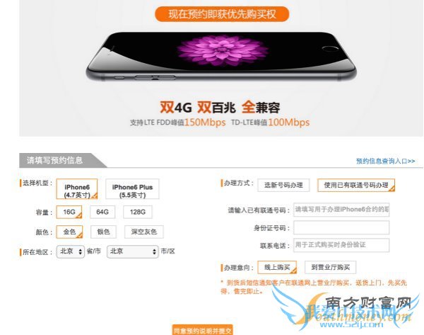 对于联通版本,臭猫了解到,联通预约用户仅能通过iPhone 6合约计划方式购买,不提供裸机预约。并且,联通老用户也可预约,无需换号续办iPhone6合约计划。