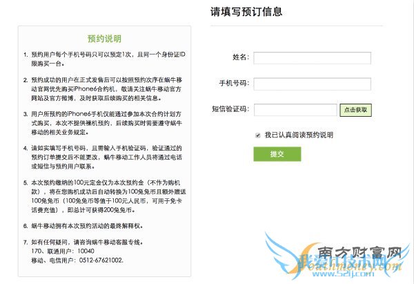 作为虚拟运营商,在今年5月推出了399元免卡这一大动作之后,蜗牛移动也先于其他虚拟运营商,推出了苹果iPhone 6合约机计划。但是也仅仅是合约计划,没有合约套餐,凡是预约用户拥有优先购买权和存100得200,并且上市时间也待确定。