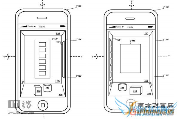 9to5Mac写道:“苹果这项专利描述的3D用户界面使用‘机载传感器自动判断和显示3D显示环境的透视投影,依据的是方位数据用户从而无需肢体操控(如触摸)显示屏。专利中描述的一个情景是,设备中集成的近程传感器可监控到‘触控显示屏上方’的手势。”